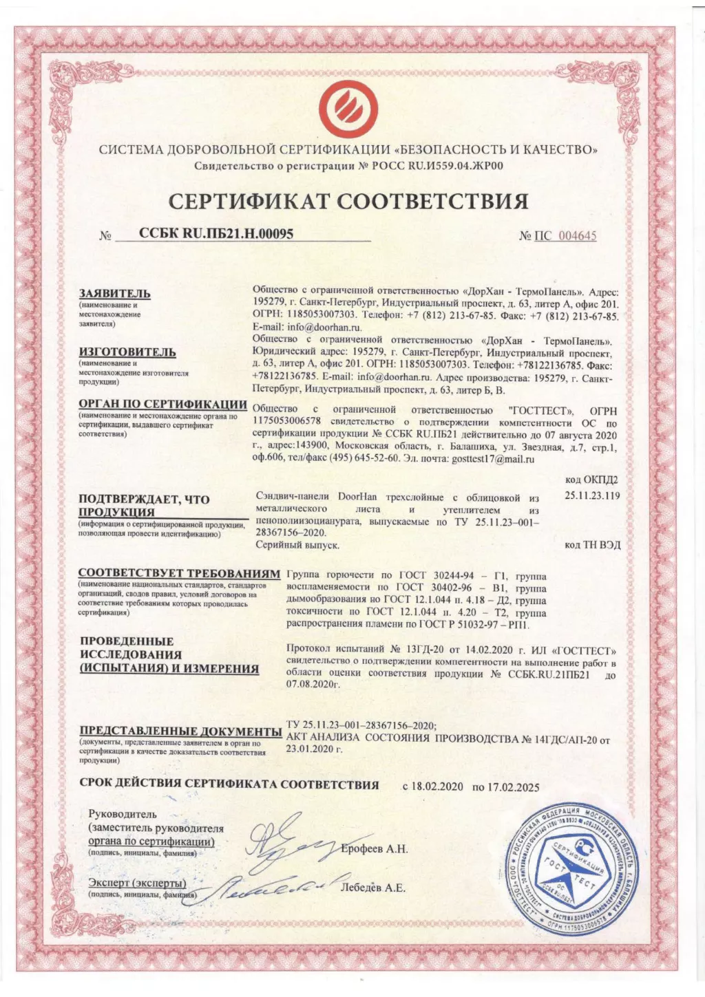 СЕРТИФИКАТЫ НА СЭНДВИЧ-ПАНЕЛИ
