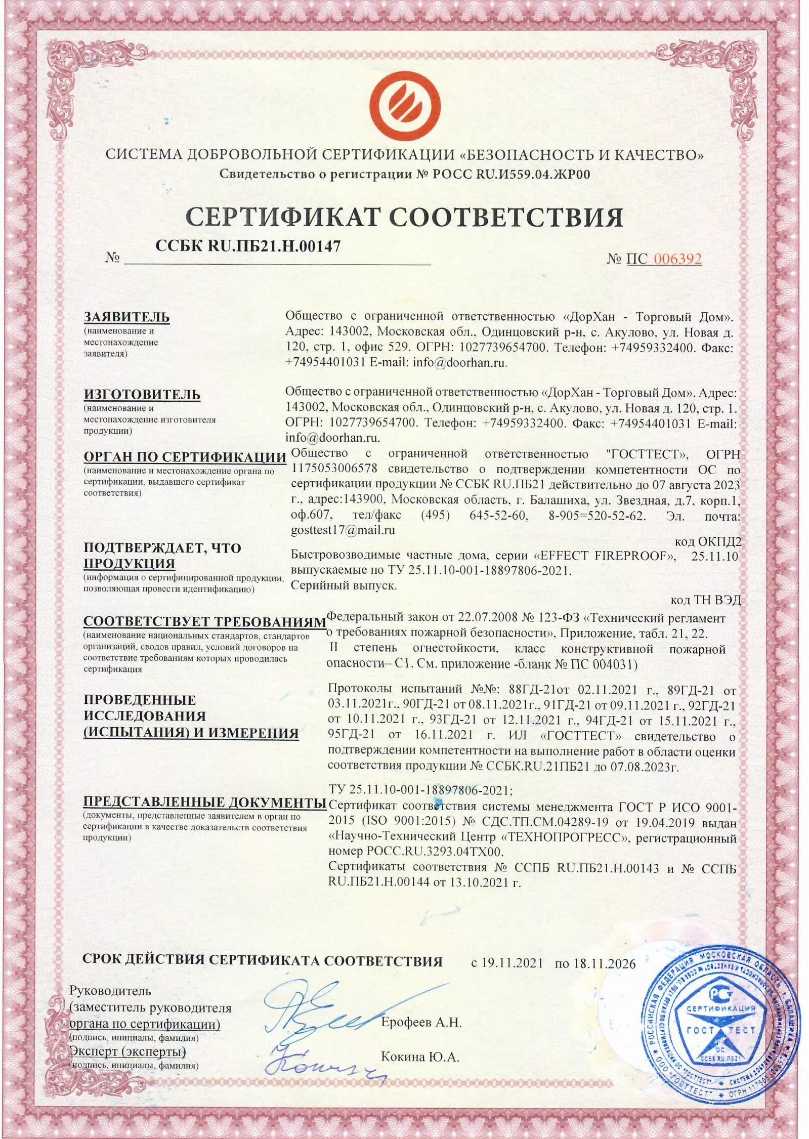 СЕРТИФИКАТЫ НА КАРКАСНЫЕ ЗДАНИЯ